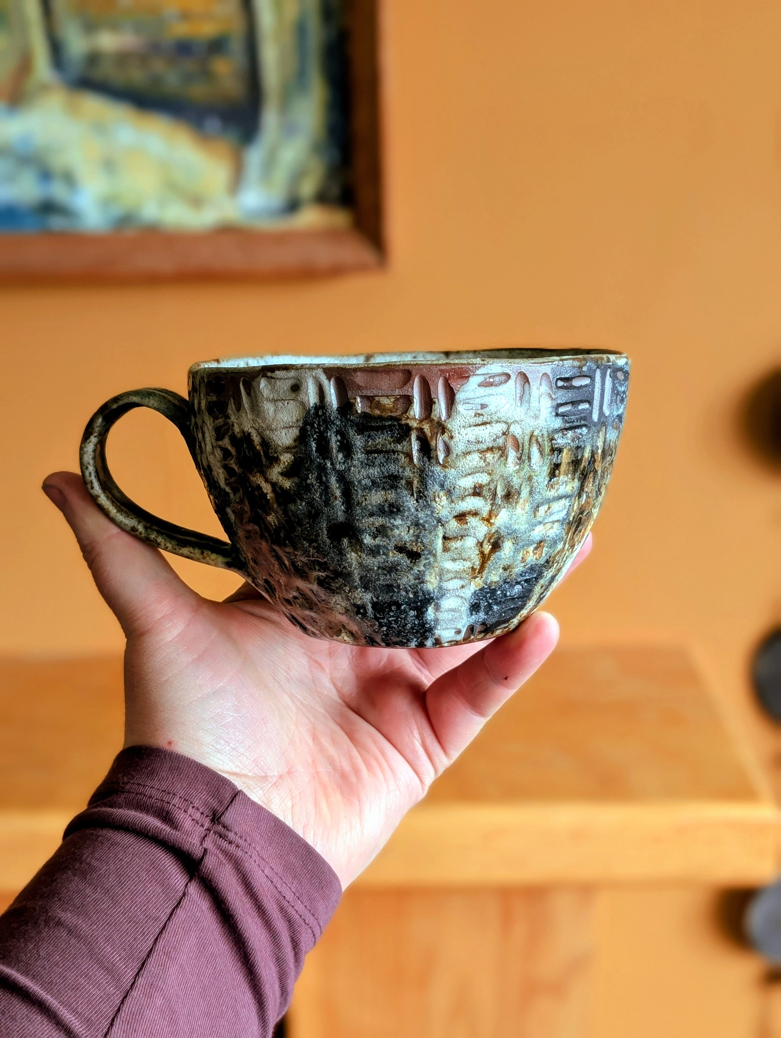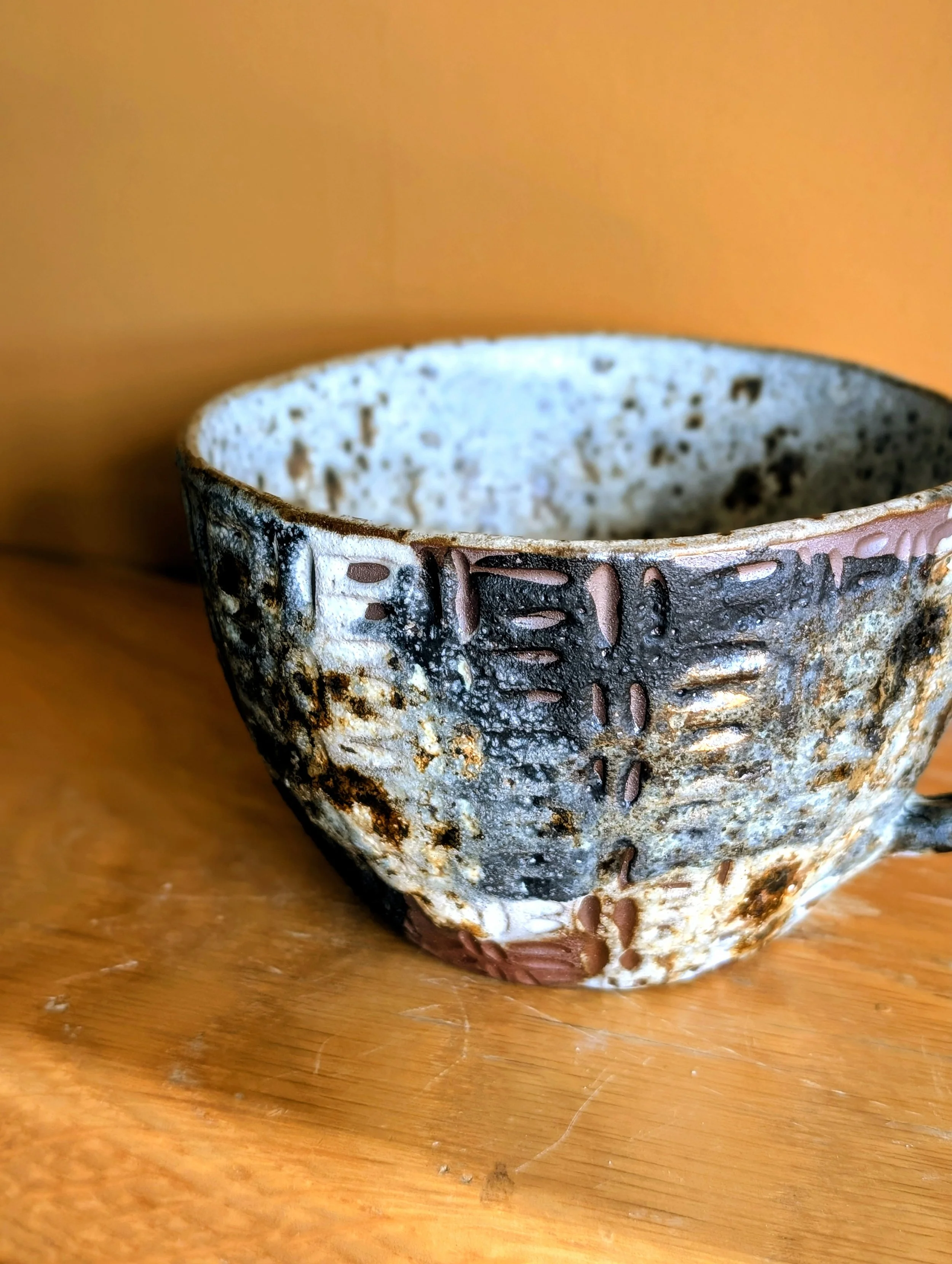 Handbuilt using terracotta clay.