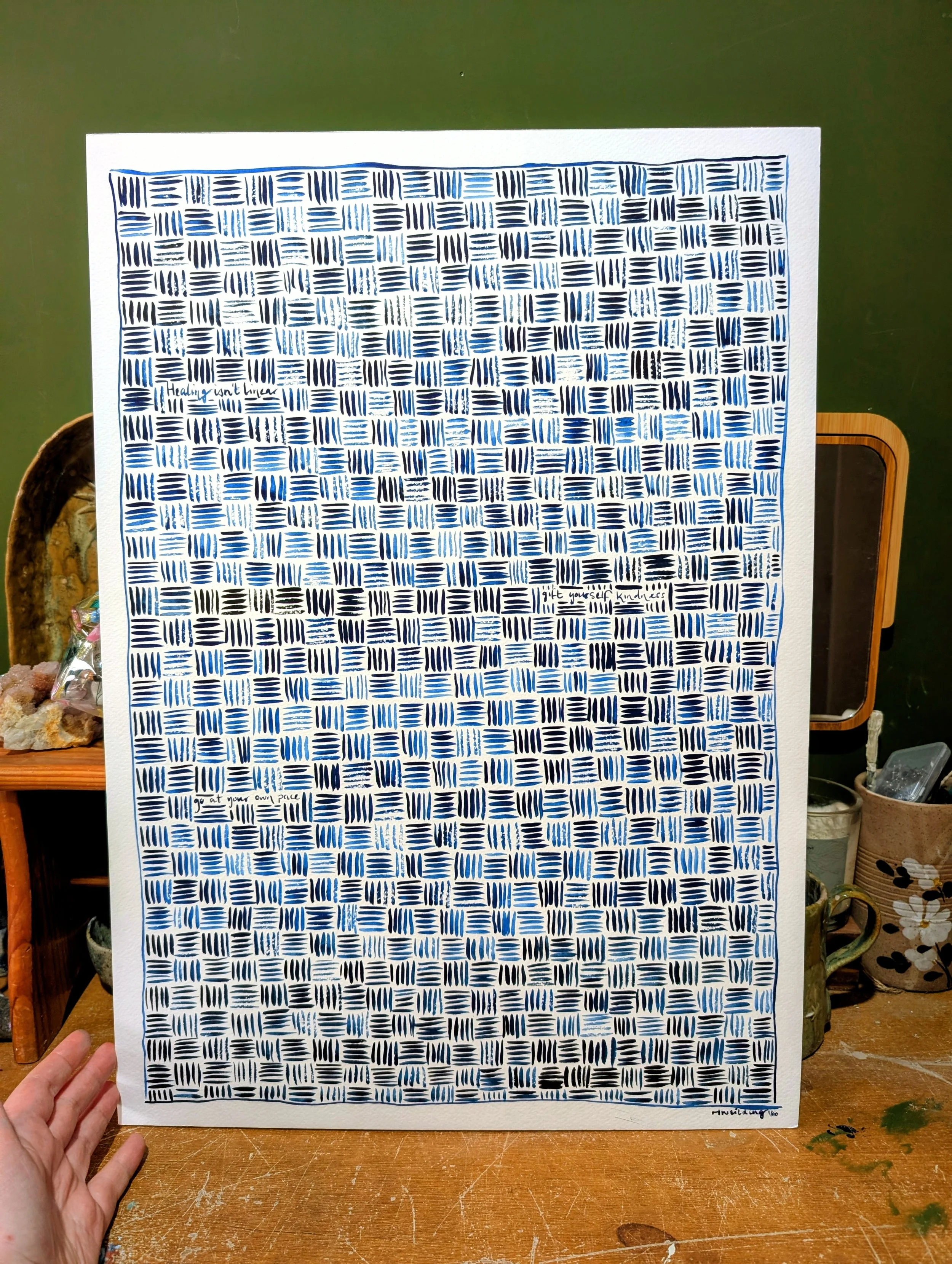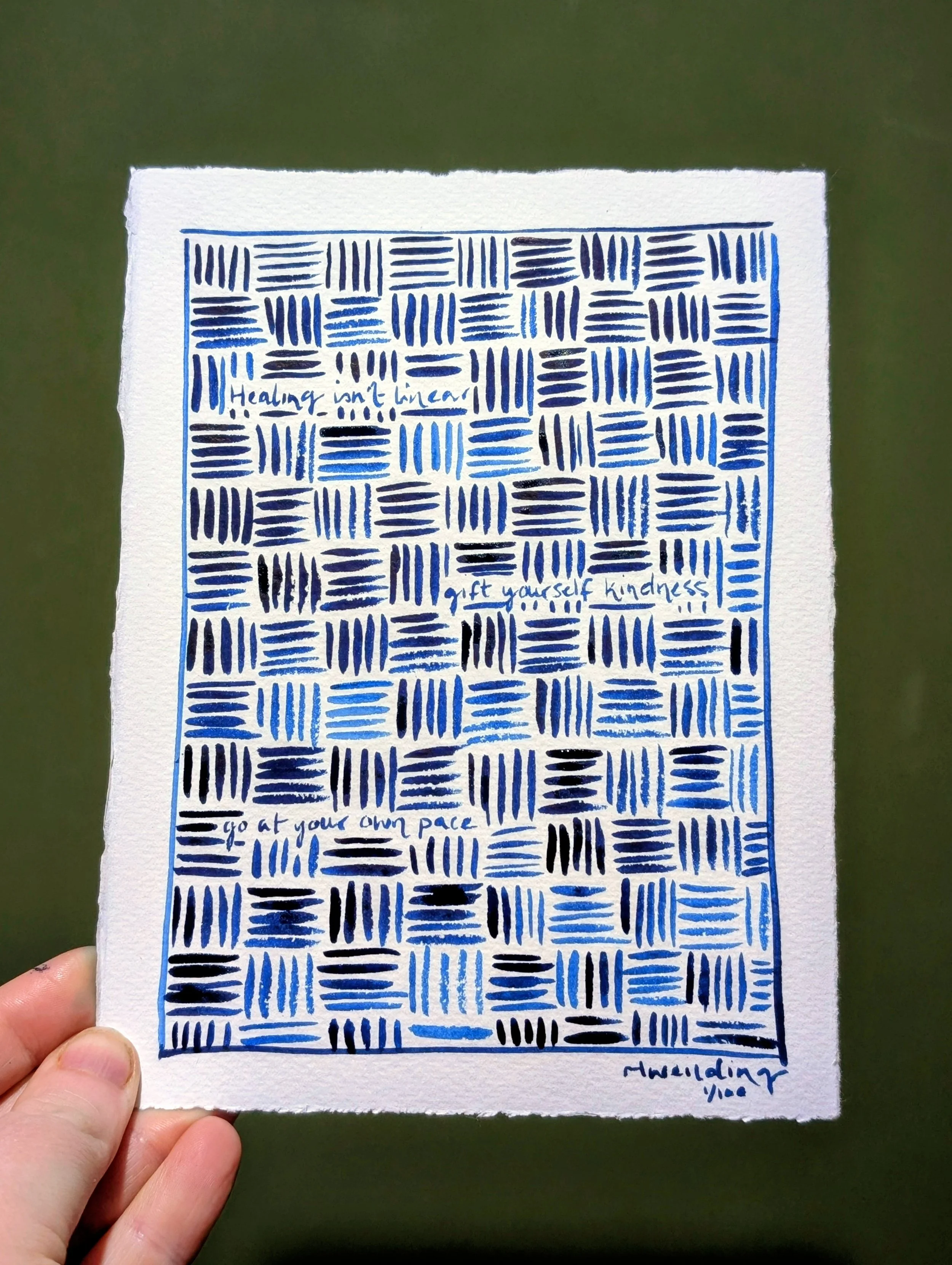 Blue watercolour painting on beautiful textured watercolour paper.